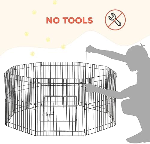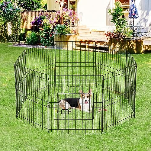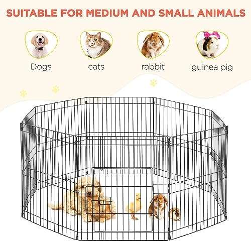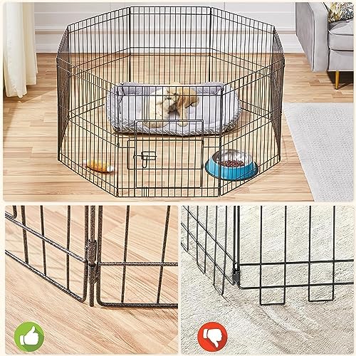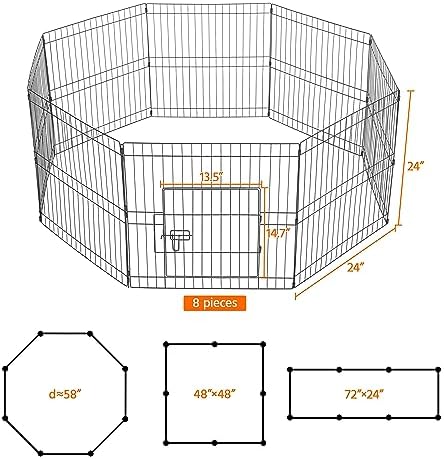 Easy to apply: The modular fence is easy to set up within a few minutes under the detailed instructions. Panels are connected by metal bars, which allows this dog playpen to be flexibly built in different shapes like octagon, square and rectangle in different sizes by adding or removing panels
