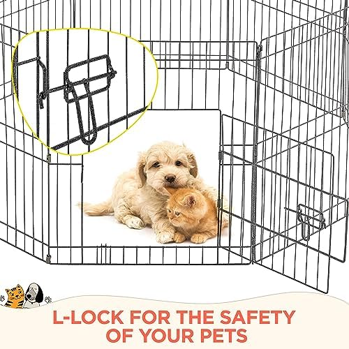 Safe & Secure: The pet playpen comes with a thoughtful door and lock for easy opening and closing, and can increase security; rounded edges provide animals safety protection, which also prevents causing damage to the floors
