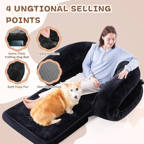 Versatile and Foldable: This multifunctional bean bag bed offers 3-in-1 folding combinations. It easily transforms into a sofa and includes a convenient carrying handle, making it perfect for both humans and dogs