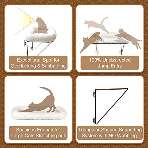 【MACHINE WASHABLE COZY BED INCLUDED】The deluxe bed is designed exclusively for our cat perch window and provides comfort, warmth and security thru stuffed wall and sherpa covered pad. Spacious enough for large cats stretch out comfortably and completely. NO CHEMICAL SMELLS GUARANTEED.